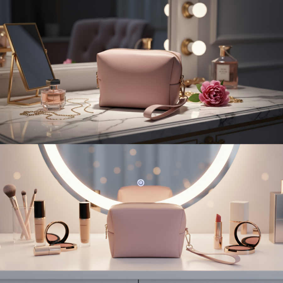 Compact & Travel-Friendly (18cm x 13.5cm x 6.5cm): Its sleek, space-saving design easily fits into your handbag while offering enough room for all your beauty must-haves.