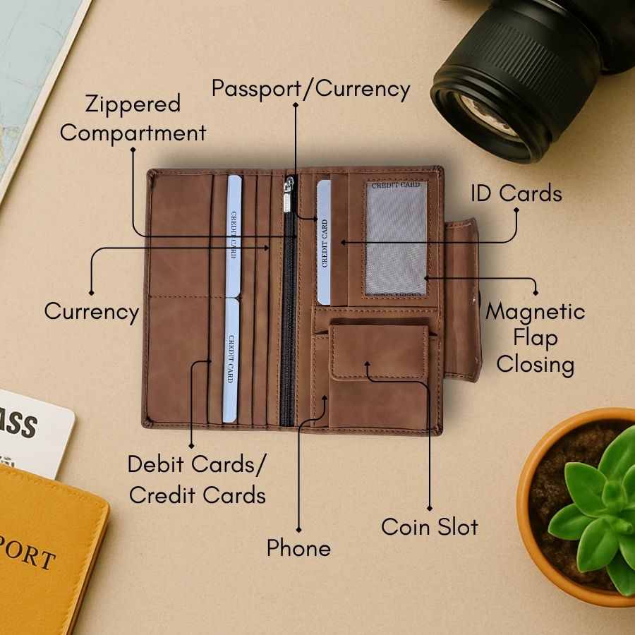 Multi-Compartment Travel Wallet – Organize Cash, Cards & Passport